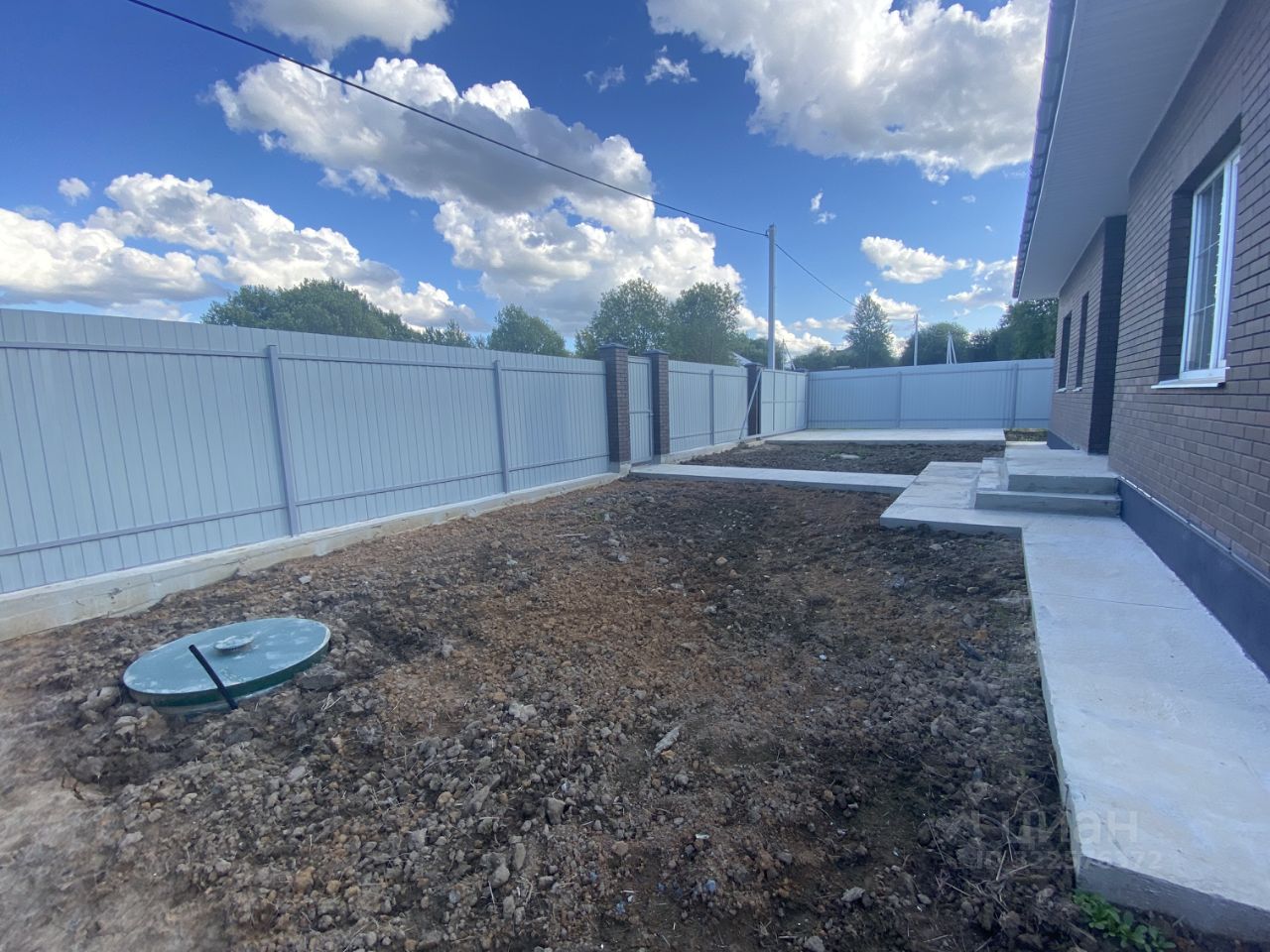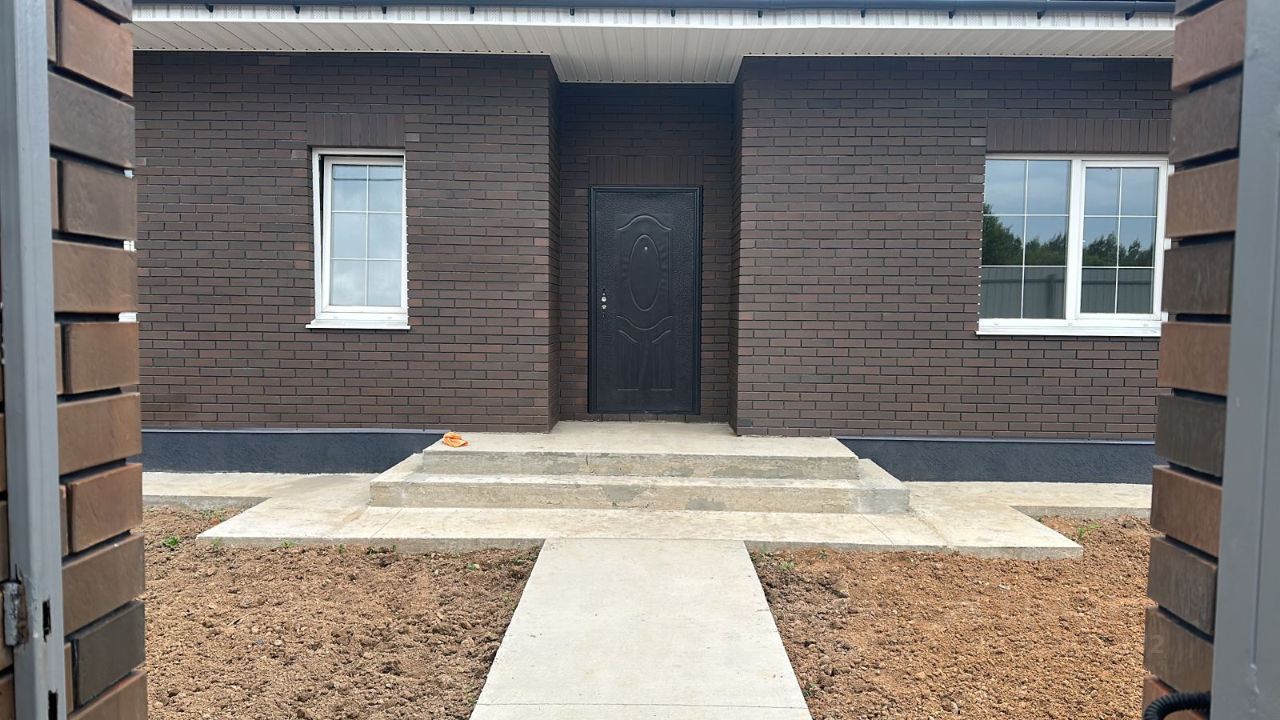 Стоянка на 2 автомобиля и отмостка вокруг дома сделаны из бетона.