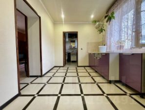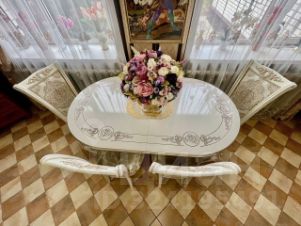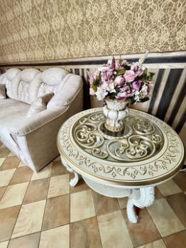 В ремонте использовались дорогостоящие строительные материалы: итальянская плитка, дизайнерские обои, дорогостоящая мебель: кухня из массива, спальня, обеденная группа и многое другое