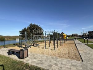 В поселке есть электричество, 15кВт, газ , асфальтированная дорога, озеленение поселка и благоустройство, спортивная и детская площадки, по периметру участка сделан каркас забора.