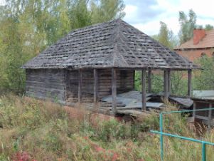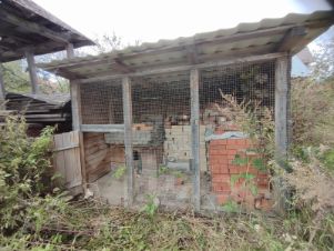 Также на участке имеется постройка с кирпичным фундаментом и циллиндрическим бревном, по задумке баня, но можно сделать беседку с летней кухней или гостевой дом.
