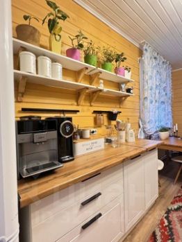 Внутри выполнен качественный ремонт, дом полностью меблирован и готов к проживанию — все соответствует фотографиям. Участок облагорожен: идеальный американский газон, брусчатка, удобная зона для парковки, бассейн и бытовка, а также оригинальные деревянные качели ручной работы. На улице выведена вода и установлена мойка; имеется оборудованная веранда с мебелью и текстилем для отдыха на свежем воздухе. По периметру участок огорожен забором с воротами, высажены цветы, деревья и прочие зеленые насаждения.