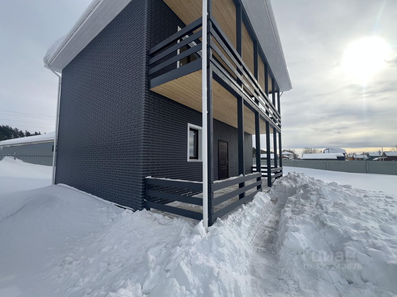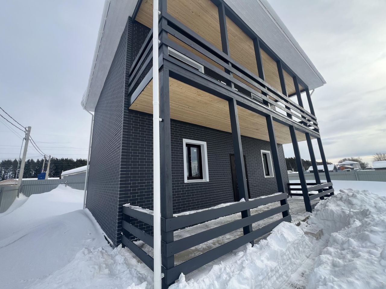Это капитальный двухэтажный дом (140 м²) из блоков на мощной бетонной плите. Участок 6 соток — ухоженный, не заросший бурьяном, сразу видно, что хозяин подходил к вопросу с умом.