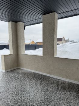 Стены из газосиликатного блока и четыре слоя утепления. Дом очень теплый! В доме установлены двухкамерные энергосберегающие стеклопакеты.