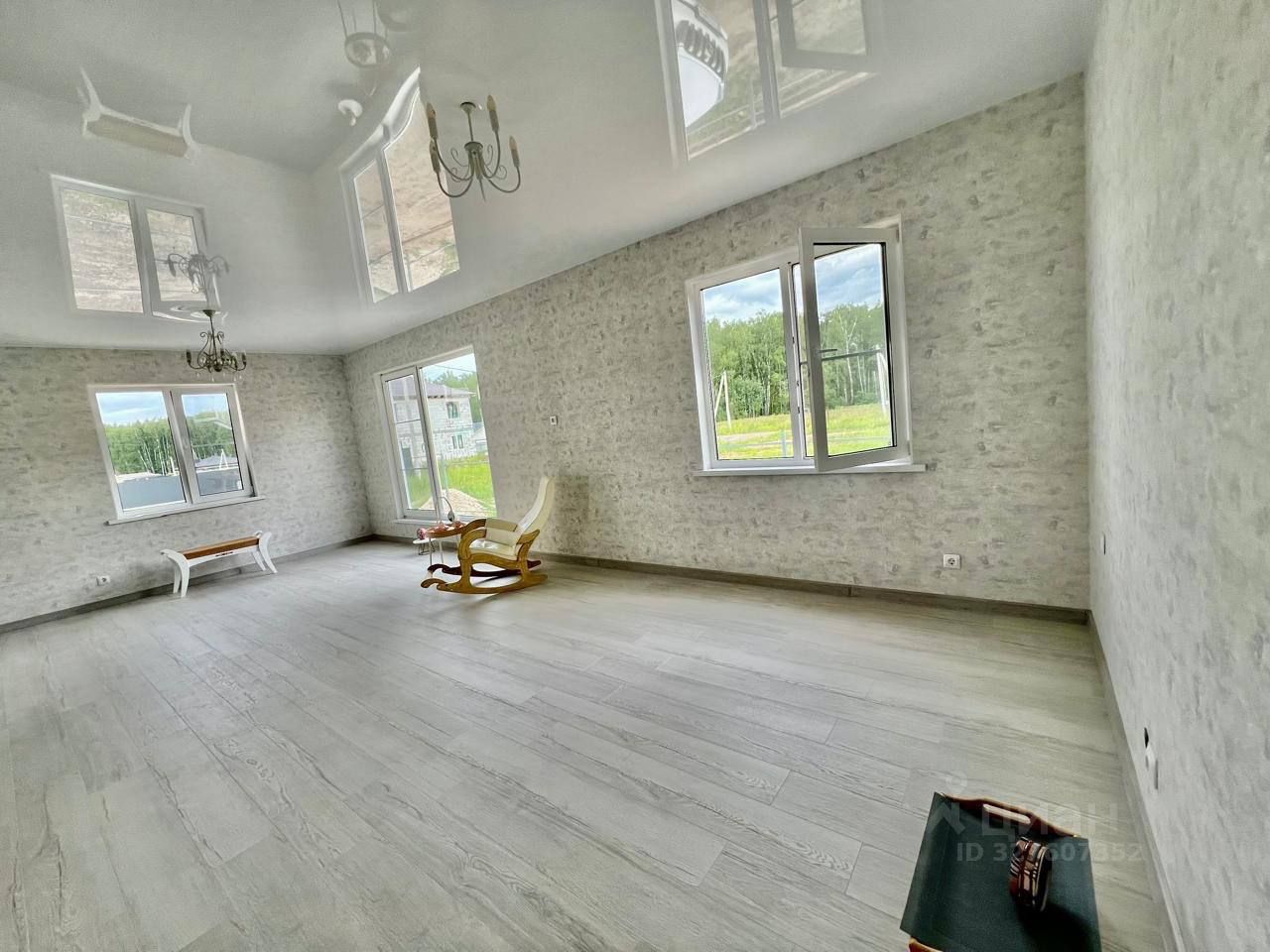 Потолки натяжные, обои, ламинат.