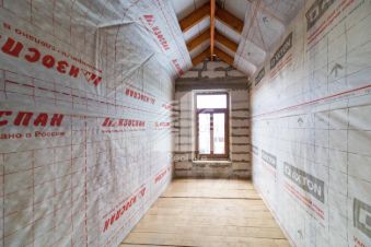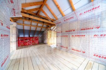 Крыша: скатная, покрытая мягкой кровлей, утепление деревянные стропила