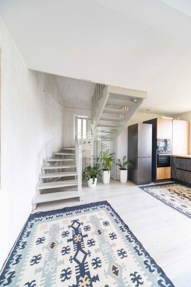 На первом этаже расположена шикарная кухня-гостиная 40 кв.м,обустроенная кухонным гарнитуром "Мария",встроенной техникой такой как:посудомоечная машина , духовой шкаф, микроволновка.Вся сантехника новая и хорошего качества.Так же сан.узел выполнен качественными материалами и имеет удобное расположение.