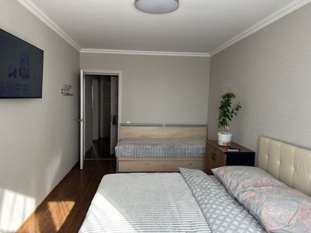 Квартира разделена на 2 комнаты и большая кухня. Всего 6 спальных мест.