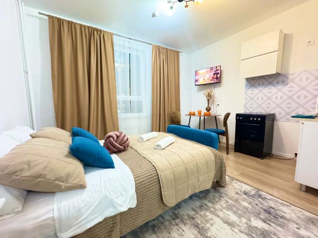 Стильная уютная квартира-студия Посуточно в ЖК Прибрежный Парк Перед бронированием ознакомьтесь с условиями проживания Мы не сдаём квартиру для шумных посиделок У нас запрет на курение всех видов сигарет Стоимость указана за двоих взрослых. За третьего гостя необходима доплата Детали бронирования: Заезд после 14-00 часов. Выезд до 12 -00 часов. Оставляете заявку, оплачиваете бронь,до заселения переводите остальную сумму и залог! В день заезда отправляем конфиденциальный электронный договор. Договор гарантирует Вашу и Нашу безопасность), до заезда необходимо его заполнить. После заезда вы получаете: 1. Необходимую для комфортного пребывания бытовую технику ( чайник, варочная панель, микроволновка, стиральная машина, фен, утюг, телевизор 43",быстрый вайфай) 2. Удобно укомплектованную обеденную зону, чай, кофе, сахар. 3. Для комфортного сна в квартире есть зона отдыха, хороший двухспальный диван, удобные подушки, чистое постельное. 4. В ванной чистые полотенца , гигиенические принадлежности. ТАПОЧКИ В Шаговой доступности много магазинов: Красное/Белое. Пятёрочка, Верный, Суши, Пиццерия. 15 от МКАД М4 ДОН 2 мин на авто Каширское шоссе 2 мин до станции Ленинская (ПАВЕЛЕЦКОЕ НАПРАВЛЕНИЕ) 8 мин пешком Аэропорт Домодедово 20 минут До реки Пахра 200метров Залог возвращается после проверки квартиры и соблюдении всех правил проживания. После каждого гостя, проводится генеральная уборка, замена постельного белья, полотенец. Внимание. Для безопасности на вход установлено видеонаблюдение ПОСТОЯННЫМ ГОСТЯМ СКИДКИ!!!
